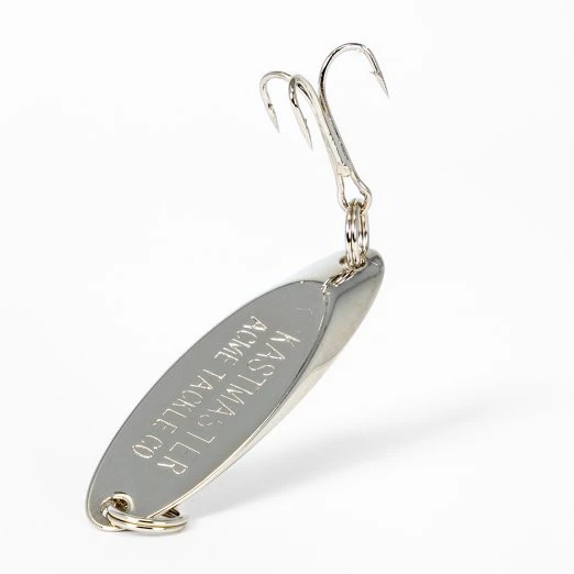 The Acme Kastmaster Lures has a single hook with a white bucktail on the back. They are available in several sizes.