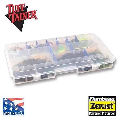 Flambeau Tuff ‘Tainer 4-Partitions/16 Zerust Dividers storage boxes are great for storing all of your fishing gear! Zerust has proven to be the absolute best way to protect your tackle against rust and corrosion. Molded into our Tuff Tainer dividers, this patented polymer emits a harmless vapor, forming a protective layer around metal surfaces. All Zerust products will maintain their effectiveness for up to five years or more, so you can count on hassle free, long lasting protection with our Tuff Tainer utility boxes. Used in Flambeau 8010 and 8050 front loading tackle boxes.