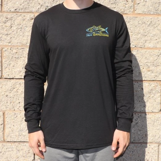 J&H Tackle Neon Tuna Long Sleeve Tees are available in M-3XL in black. Makes the perfect gift for any offshore angler.