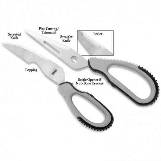 Rapala Fish And Game Shears are a handy tool to have on the water. These heavy-duty shears excel at cutting heavy rope as well as making finer cuts. Rapala Fish And Game Shears features a straight knife, serrated knife/fish scaler, bone cutter, bottle opener and even a vegetable peeler. The oversized grip is extremely comfortable and will last a very long time! These scissors come apart for easy cleaning. There are lots of shears out there, but Rapala Fish And Game Shears have proven to be extremely useful. They get the job done and you will be glad you have a pair when you are on the water.