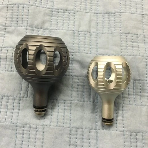 Van Staal Power Grip Handle Knobs are a great way to upgrade your Van Staal Spinning Reel. The Van Staal Power Grip Handle Knob is a ball handle that is constructed of 6061-T6 aluminum. It feels great in your hande and will give you a better grip on your handle. There are now two versions. The Van Staal VS Power Grip Handle Knob fits the VS200, VS250, VS275, VS300, VSB200, VSB250 and the VM275. The Van Staal VR Power Grip Handle Knob fits VR reels sizes 125-200. Whether you own a VS or a VR, one of these knobs will give you better grip and more power on your reel. They are really well made. Get yourself a Van Staal Power Grip Handle Knob!